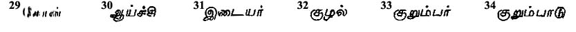 Besides cooking and clothing, another great invention of man is speech. Speech may be either rhythmic or arhythmic. Whether prose preceded poetry in speech as is assumed by most people, or whether, as is more probable, poetry and prose were later differentiations of an original method of speech which was partly rhythmic and partly arhythmic, it is difficult to determine; but it is certain that in the development of literature, poetry preceded prose by long ages. The words pan38 and pan39 meaning, a piece of music, (whence padu, 40 sing, pattu,)41 belong to the earliest stratum of Tamil, thus proving that singing was one of the earliest recreations of the Tamils. The panar,42 originally singers and after the institution of kingship in the pastoral stage of culture, royal bards and panegyrists, followed an ancient and honoured, though ill- rewarded, profession among the Tamils. The ancient panars were the friends and counsellors of kings during the long ages when the pure Tamil culture flourished, but when Aryan culture from North India mingled with that of South India during historic times, the persistence of the panar in the over-indulgence in meat-fold and drinking of ardent spirits brought about their social degradation into one of the lowest and most untouchable castes of South India.