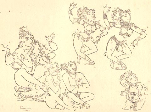 The various ‘sthanas’ and ‘karanas’ so important in natya are as essential in ‘chitra,’ wherein beauty of pose is as important as beauty of form. Ratnakara, the author of the gigantic work Haravijaya, speaks of this connection between ‘chitra’ and natya in the verse: